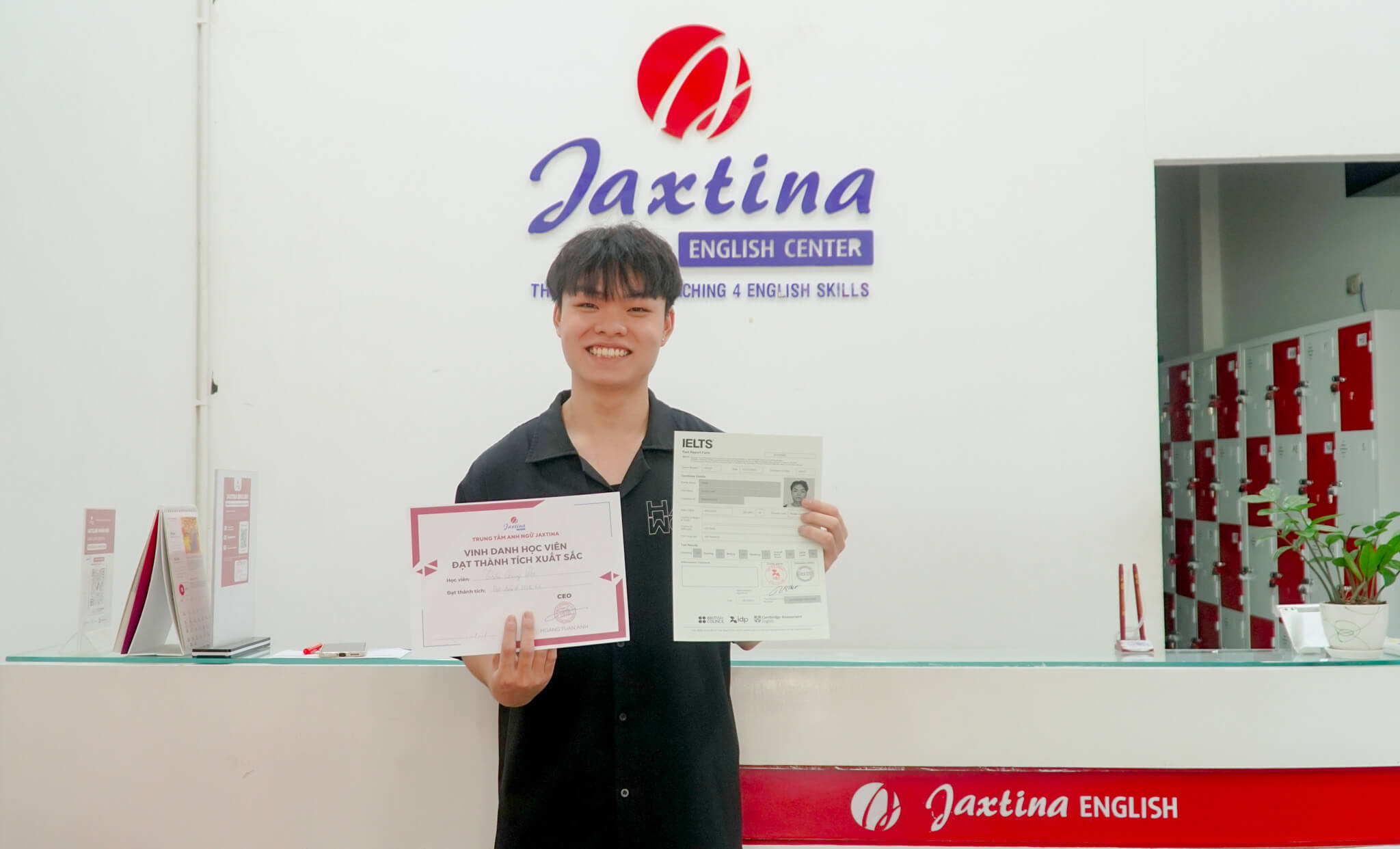 Thế rồi, sau khi lựa chọn học tại Jaxtina, Đạt đã có những thay đổi đáng kể. Trong quá trình học tại trung tâm 3 tháng, bạn đã được trang bị một nền tảng kiến thức vững vàng và phương pháp học đúng đắn, giúp bạn không còn cảm thấy khó khăn trong việc làm đề. Đạt đã thành công chinh phục 6.0 IELTS. Đạt chia sẻ rằng: “Em nghĩ rằng đó không chỉ là thành quả của em mà còn có sự giúp đỡ từ giáo viên ở đây”.
