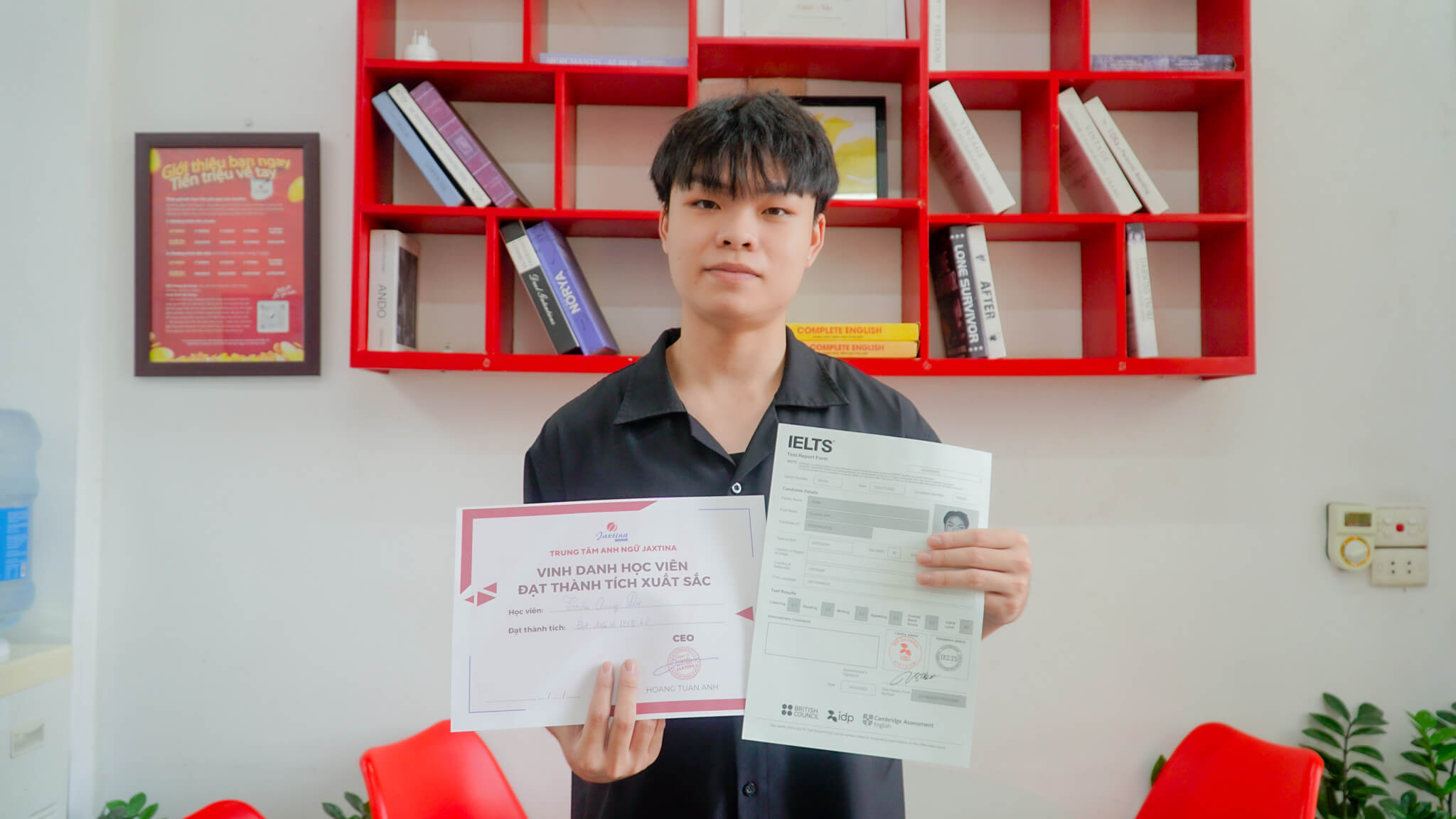 Trần Quang Đạt, 18 tuổi, đạt 6.0 IELTS chỉ sau 3 tháng theo học tại Jaxtina. Từ một người bị mất phương hướng trong việc luyện đề thi IELTS, Đạt đã có những thay đổi đáng kể chỉ sau 1 khóa học tại Jaxtina. Với Đạt, việc tìm được phương pháp học phù hợp là một trong những yếu tố quan trọng nhất để thành công chinh phục 6.0 IELTS.